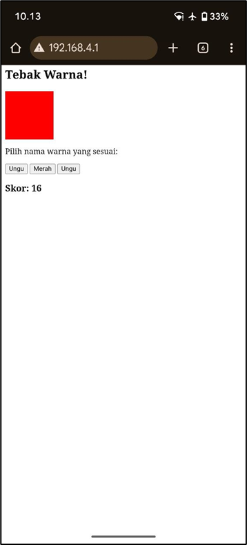 - Akses ke halaman game cukup dengan membuka alamat IP yang dicetak di Serial Monitor (biasanya 192.168.4.1).